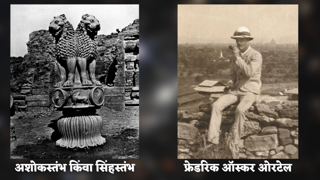१८५१ मध्ये उत्खननादरम्यान सांची येथून अशोकस्तंभ सापडला. त्यांचा सिंह चतुर्मुख सारनाथपेक्षा थोडा वेगळा आहे. ब्रिटिश राजवटीवर अनेक पुस्तके लिहिणारे प्रसिद्ध इतिहासकार चार्ल्स रॉबिन ऍलन यांनीही सम्राट अशोकाशी संबंधित शोधांवर लेखन केले. अशोकः द सर्च फॉर इंडियाज लॉस्ट एम्परर या पुस्तकात त्यांनी सारनाथ येथील अशोक स्तंभाच्या शोधाबद्दल तपशील दिला आहे. फ्रेडरिक ऑस्कर ऑर्टेल यांचा जन्म जर्मनीमध्ये झाला. त्यांनी तरुणपणात जर्मन नागरिकत्व सोडले आणि भारतात आले आणि वर्गाच्या नियमांनुसार त्यांनी ब्रिटिश नागरिकत्व घेतले. त्यांनी थॉमसन कॉलेज ऑफ सिव्हिल इंजिनिअरिंग (आता IIT रुरकी), रुरकी येथून पदवी प्राप्त केली. रेल्वेमध्ये सिव्हिल इंजिनीअर म्हणून काम केल्यानंतर फ्रेडरिक ऑस्कर ओरटेल यांनी सार्वजनिक बांधकाम विभागात बदली घेतली.