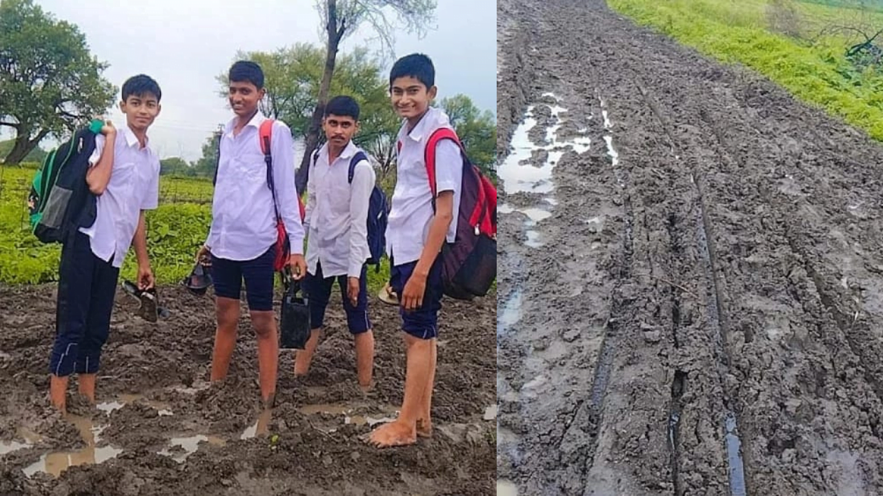 चिखल तुडवत विद्यार्थ्यांना जावे लागते शाळेत; २० वर्षांत छदामही खर्च नाही